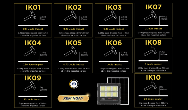 • Câu trả lời 3: IP liên quan đến khả năng chống nước và bụi, còn IK liên quan đến khả năng chống va đập. Cả hai đều quan trọng.